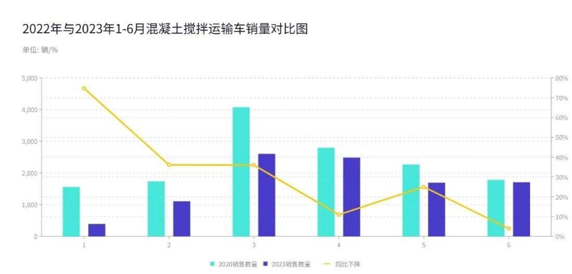 受國內(nèi)需求收縮、供給沖擊、預(yù)期減弱三重壓力影響,近期經(jīng)濟(jì)下行壓力較大,固定資產(chǎn)投資下滑,很多工程建設(shè)項目停滯或者延緩。在大環(huán)境的影響下,混凝土攪拌運(yùn)輸車這一工程建設(shè)的“主力軍”銷量受到重創(chuàng),需求大幅度減少。2023年上半年銷量不足1萬輛,同比下29.6%。