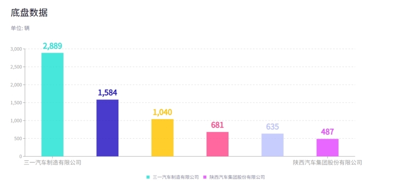 其中,三一以2889輛的銷量獨(dú)占鰲頭,占比29%。一汽和重汽銷量分別為1584輛和1080輛,占比16%和10%。