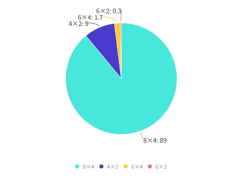 從驅(qū)動方式來看,8x4的混凝土攪拌運(yùn)輸車占比最高,占比89%,4x2的攪拌車占比最小,僅為9%。