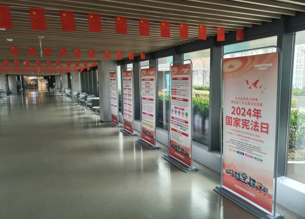 ??此外,中國重汽還在辦公場所還設(shè)置了宣傳展板,以普及憲法知識(shí),宣傳憲法精神,進(jìn)一步營造濃厚的法治氛圍。