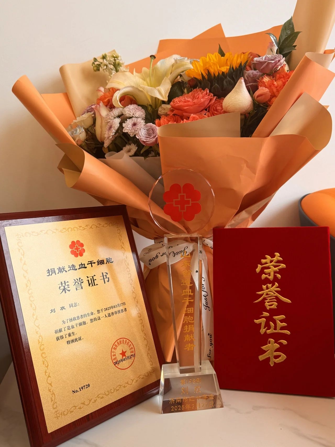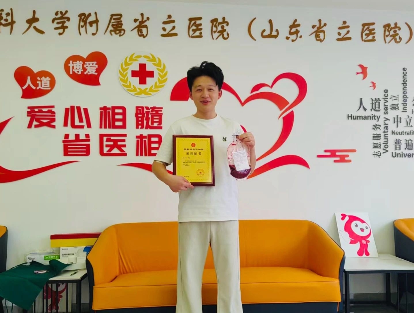 ??18歲高考后,劉歡便積極參與公益事業(yè),9次無償獻血,累計獻血量達3500毫升。2022年,他捐獻了檢測血樣,將HLA分型相關資料匯入中國造血干細胞捐獻者資料庫。