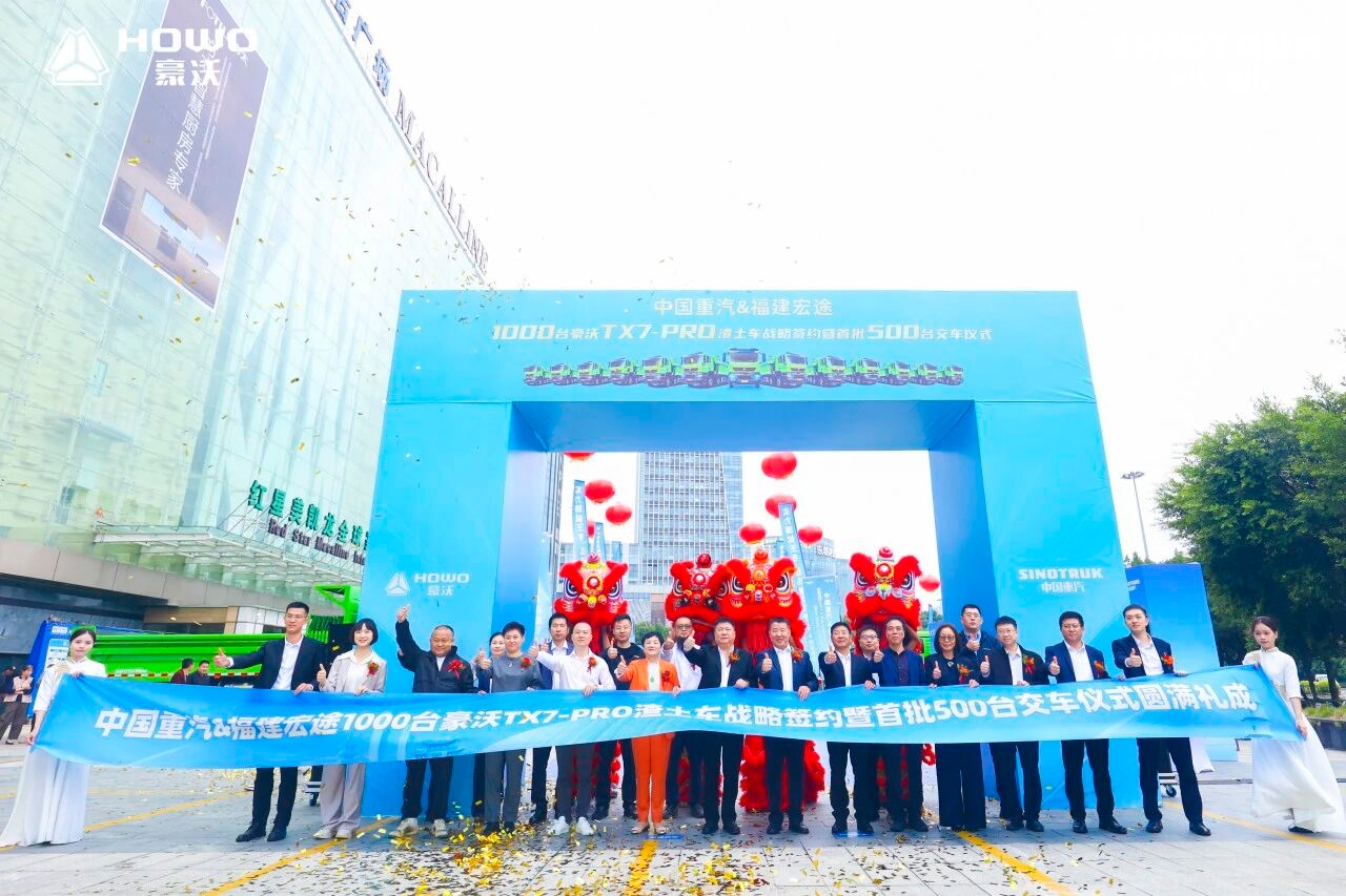 ??八閩福地,山海和鳴。10月28日,中國重汽與福建宏途1000臺(tái)豪沃TX7-PRO渣土車戰(zhàn)略簽約暨首批500臺(tái)交車儀式在福建福州圓滿舉行。本次合作秉持“合規(guī)、智能、高效”的核心理念,以高端裝備的可靠品質(zhì)與卓越性能,為福州城市建設(shè)與運(yùn)力升級(jí)注入強(qiáng)勁動(dòng)能。