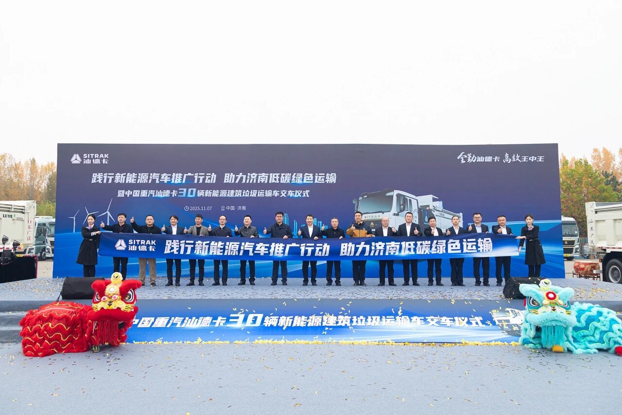 ??11月7日,“踐行新能源汽車推廣行動 助力濟南低碳綠色運輸暨中國重汽汕德卡30輛新能源建筑垃圾運輸車交車儀式”在濟南商用車制造公司隆重舉行。此次交付不僅標志著中國重汽與濟南盛仕達等三家企業(yè)的合作發(fā)展邁入新征程,同時為濟南市綠色物流體系建設(shè)注入強勁動力。