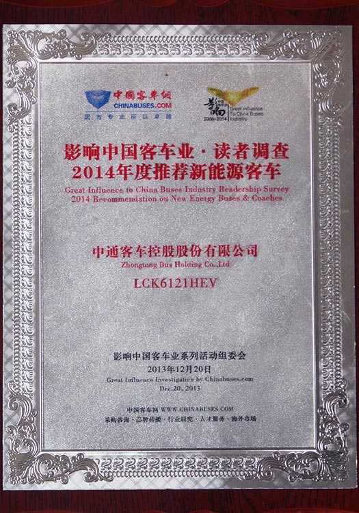 • 2014 Recommendation On New Energy Buses & Coach LCK6121HEV