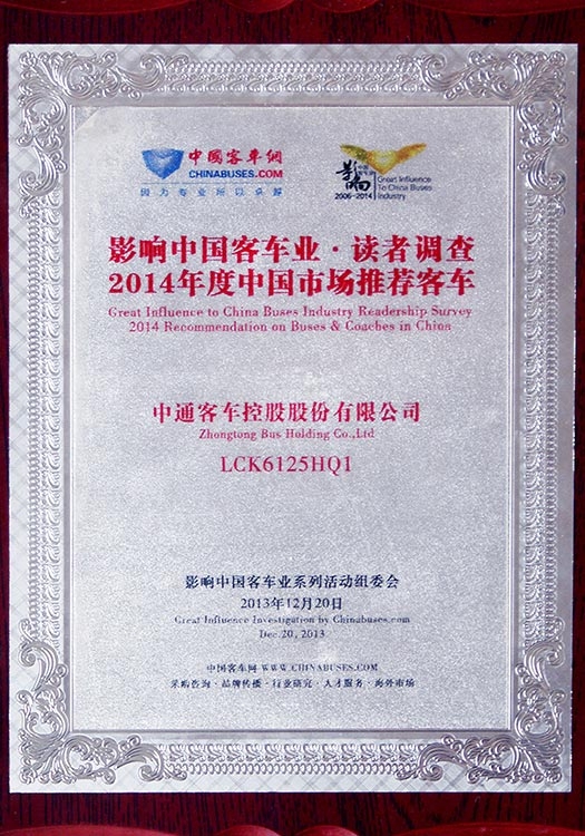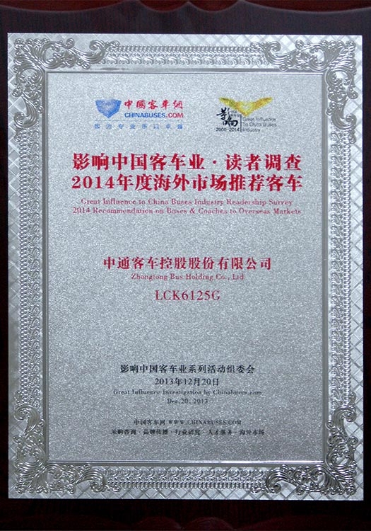 • 2014 Recommendation On Buses & Coach To Overseas Markets LCK6125G
