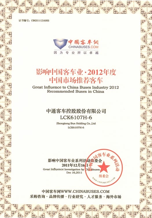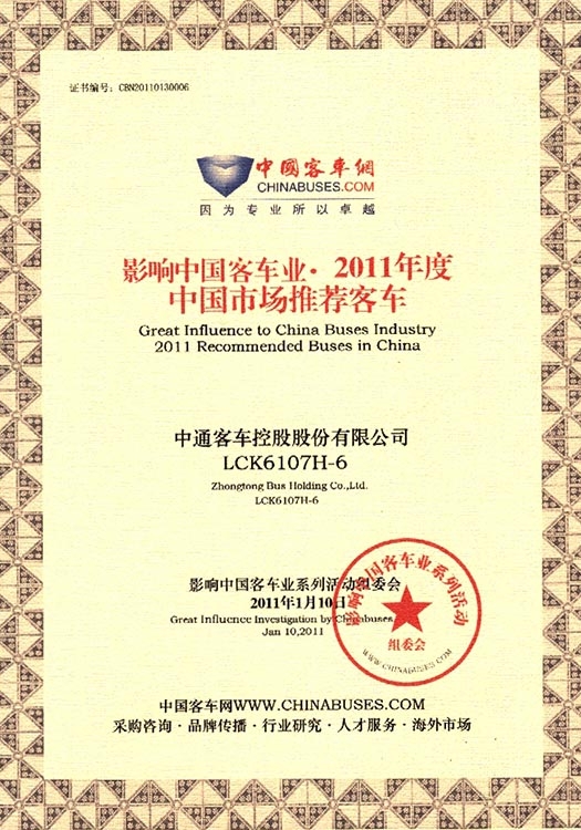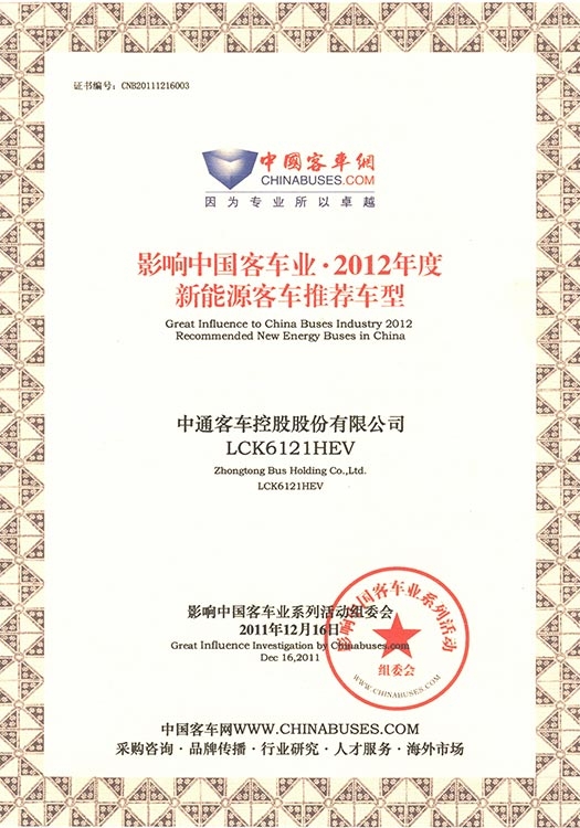 • Award TOP 10 New Energy Buses & Coaches In The Year Of 2011
