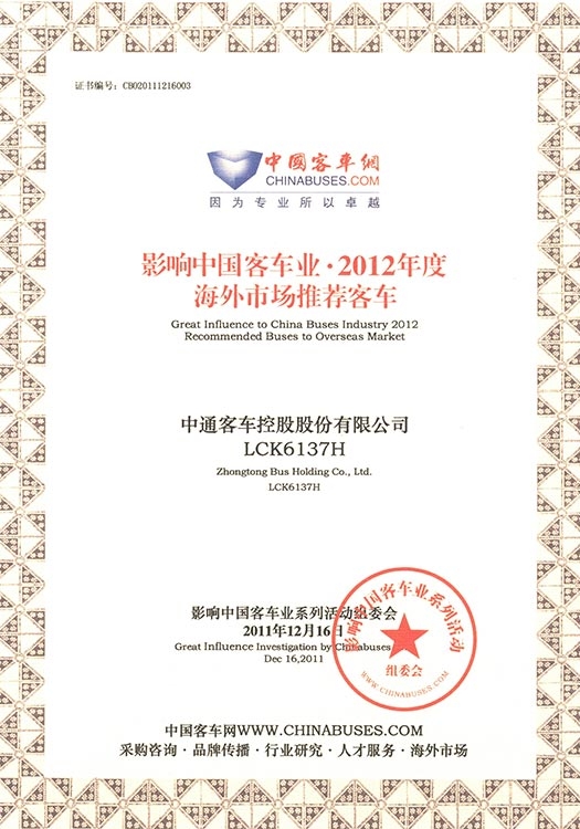 • 2012 Recommended Buses To Overseas Markets LCK6137H