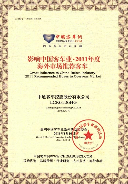 • 2011 Recommended Buses To Overseas Markets LCK6126HG