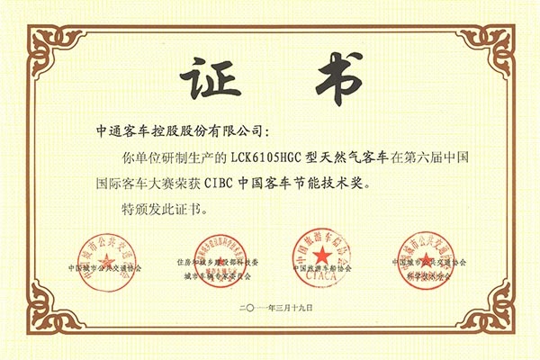 • LCK6105HGC Awards CIBC China Buses Energy-Saving Awards