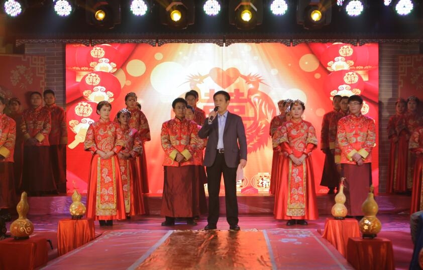 婚禮儀式現(xiàn)場,傳統(tǒng)喜慶的舞蹈與震撼現(xiàn)代的燈光舞臺秀開場,16對新人攜手登上舞臺,拉開了婚禮精彩的序幕。伴隨著儀式的進行,公司總經理孫慶民為新人證婚,公司董事長李樹朋為新人主婚并表達了對新人的美好祝愿。公司領導的殷切關懷承載著企業(yè)對員工的寄托予希望,在員工成長的同時,企業(yè)實現(xiàn)和諧發(fā)展。