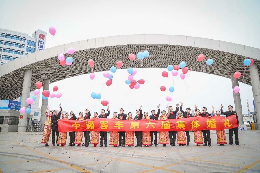 鵲上枝頭春意鬧,燕飛心懷伊人來。時間飛逝,一年一度的集體婚禮于2018年1月2日如期而至,中通客車第六屆集體婚禮隆重舉行。中通客車董事長李樹朋、總經(jīng)理孫慶民攜公司領(lǐng)導(dǎo)班子成員參加活動,山東省交通廳的高洪濤廳長、青島公交董事長趙海濱先生及公司領(lǐng)導(dǎo)班子、萊蕪長運副總經(jīng)理尚念進先生也來到現(xiàn)場,為集體婚禮和11對新人帶來了祝福。