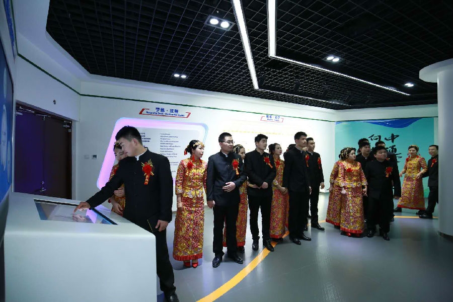 2018年正值中通集團成立60周年,巡游活動伊始,11對新人在公司門口放飛60個氣球,以牢記公司一甲子發(fā)展歷程,祈福中通有更廣闊的明天。為了深入了解企業(yè)文化,新人在工作人員的帶領(lǐng)下攜手參觀公司辦公樓和榮譽展廳,進一步了解中通的昨天和今天。公司大槐樹見證了近50對新人的愛情,本屆集體婚禮也不例外,11對新人在大槐樹下許愿祈福,一同鎖下代表忠貞愛情的同心鎖。