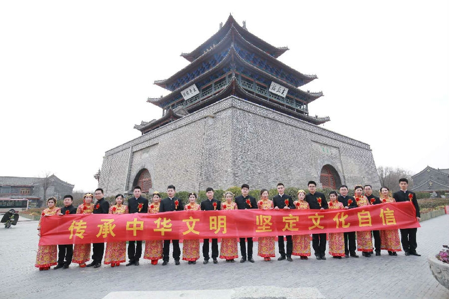 1月2日下午,11對新人乘坐中通人自己裝扮的溫馨喜慶的婚車在聊城市區(qū)巡游,把婚禮的喜悅分享給市民。在水上古城的活動中,11對新人首次參觀婚俗文化博物館,了解中華傳統(tǒng)的婚俗文化,將中華文明傳承和發(fā)揚;光岳樓下在廣大游客的見證和祝福下新人們許下愛情的誓言,互許終身